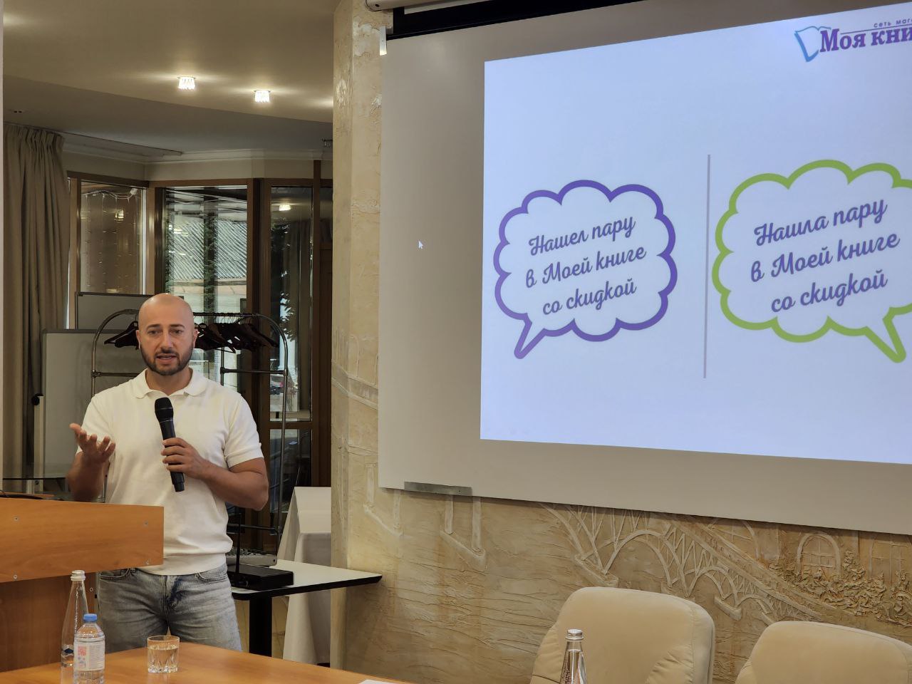 «Моя книга» профессионально работает с видеоформатом. Начиная с 2024 года книжный выходит за рамки магазина и снимает увлекательные видеосюжеты «Угадай автора» на улицах Саратова. В чем их смысл? Ведущий общается с посетителями центральных улиц города, просит угадать автора книги по названию (для опросов выбираются известные книги, российская и зарубежная классика). Угадавшим автора, дарятся книги. Все сюжеты потом выкладываются в ВК канал «Моя книга» и получают невероятно большое количество отзывов и оценок. Одно из последних видео получило более 60 тыс. просмотров. Таким образом, проект «Угадай автора» позволил существенно расширить лояльную читательскую аудиторию для сети «Моя книга».