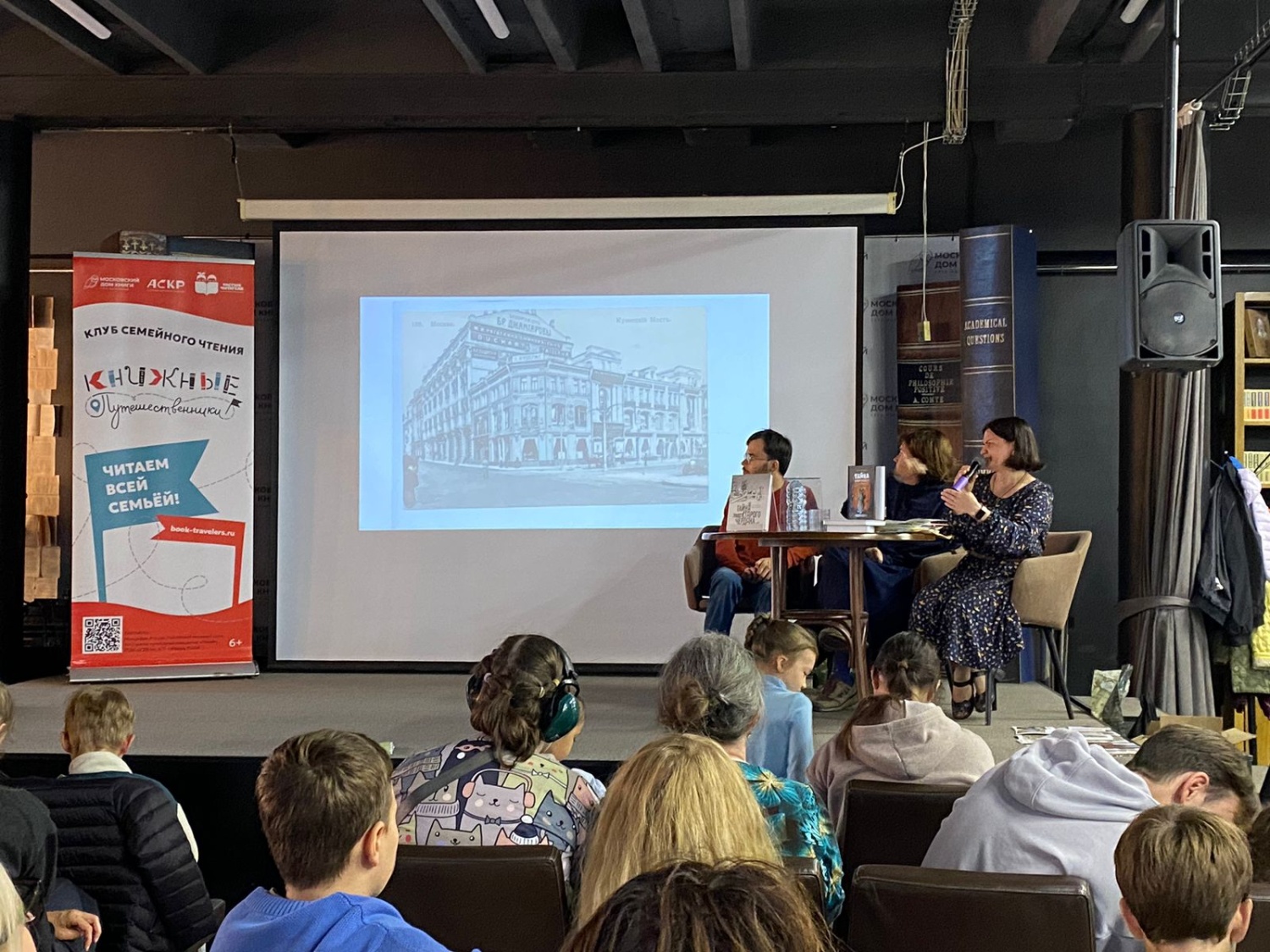 Мария Сурвилло и Иван Сурвилло рассказали как из семейных путешествий, чтений вслух, обсуждений прочитанного рождаются новые истории, ведь именно так дедушка, известный дипломат Петр Стенний, и внук Иван написали свою книгу приключений, в которой тесно сплелись большая история императорской семьи, усадьбы Архангельское, Ильинского и истории мальчишек и девчонок пятиклассников. Участники мероприятия смогли познакомиться с дневниками путешествий, которые бережно хранятся в семье Стегний-Сурвилло. Книга «Тайна сгоревшего дома» тоже написана семейной парой. Ее авторы известная детская писательница Наталья Волкова и ее супруг, президент союза филокартистов, коллекционер Василий Волков. И жанры у обеих книг совпадают - детектив и приключение с историческим контекстом.