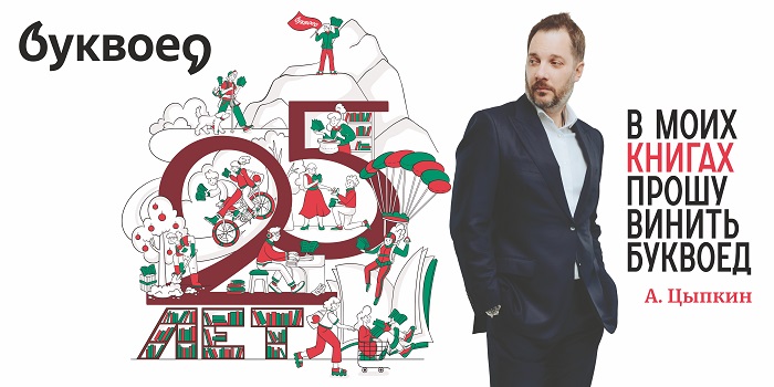 1 октября стартовала широкая рекламная кампания, приуроченная к юбилею бренда. «В моих книгах прошу винить Буквоед», – ироничная фраза от лица писателя. Накануне, 29 сентября, во флагманском «Буквоеде» прошёл «Цыпкин день» – писатель отпраздновал своё 50-летие в окружении читателей в родном Петербурге. Во время встречи писатель поделился, что его книги начали публиковаться при поддержке «Буквоеда» ещё в 2015 году.